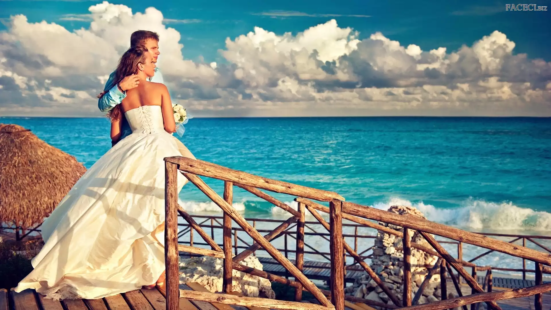 Molo, Para, Obłoki, Niebo, Młodych, Morze - faceci.biz